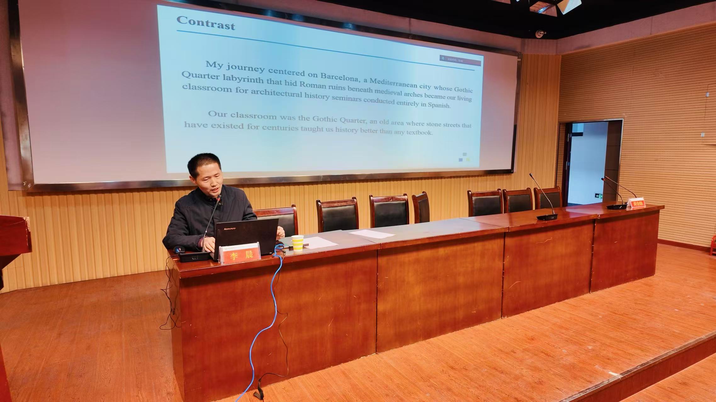 李晨以“AI驱动的外语教学内容重构与教学设计策略”为题,展示了利用生成式AI进行学习任务生成、语料定制推送和课堂活动设计的实践案例,强调通过情境化任务、项目化学习和过程性评价引导学生提升高阶思维与跨文化交际能力。