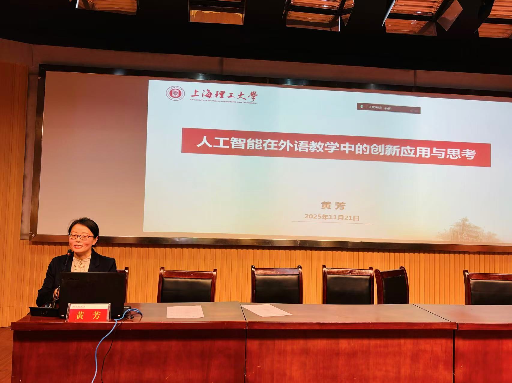 11月21日下午,我院举办“AI赋能外语课程设计与学术研究工作坊”活动。上海外国语大学陈坚林教授、上海大学戴朝晖博士、山东大学杨港博士、东南大学李晨博士、上海理工大学黄芳博士应邀作专题报告。维多利亚老品牌76696vic党政班子成员、全体教师、研究生及省内兄弟院校教师代表共150人参加了工作坊。工作坊由副院长瞿宁霞、黄全灿主持。