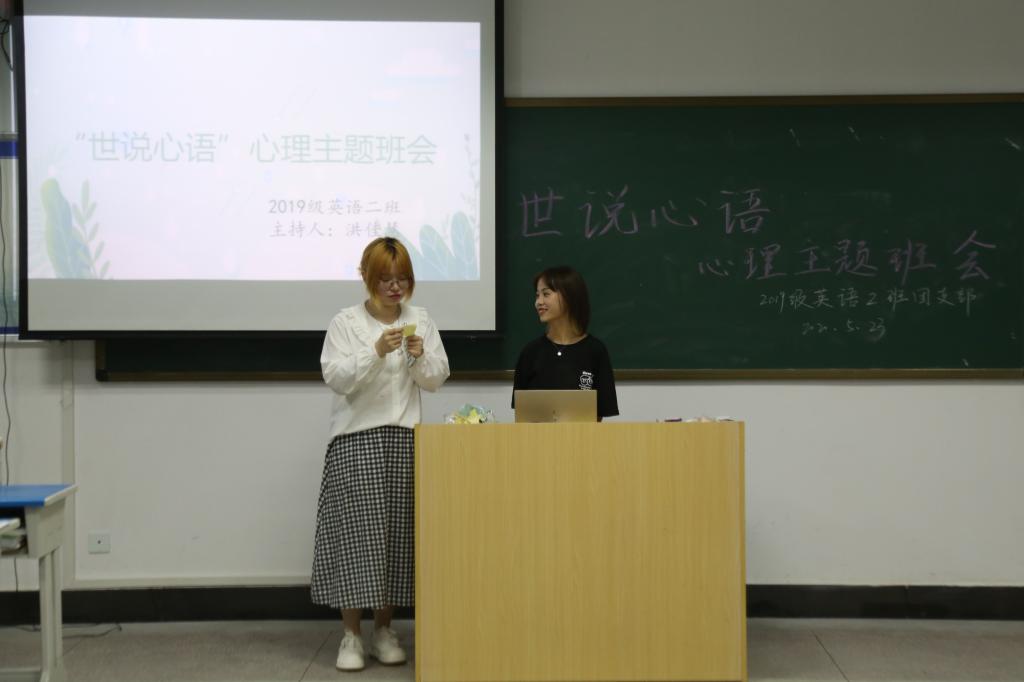 “马兰花儿开,马兰花儿开”“开几瓣?”“开四瓣!”……话音刚落,教室中央的人群立刻按照所说数字抱成一团。5月23日晚,维多利亚老品牌76696vic407教室内传来一片欢声笑语,原来是英语专业2019(2)班正在开展“世说心语”心理主题班会。