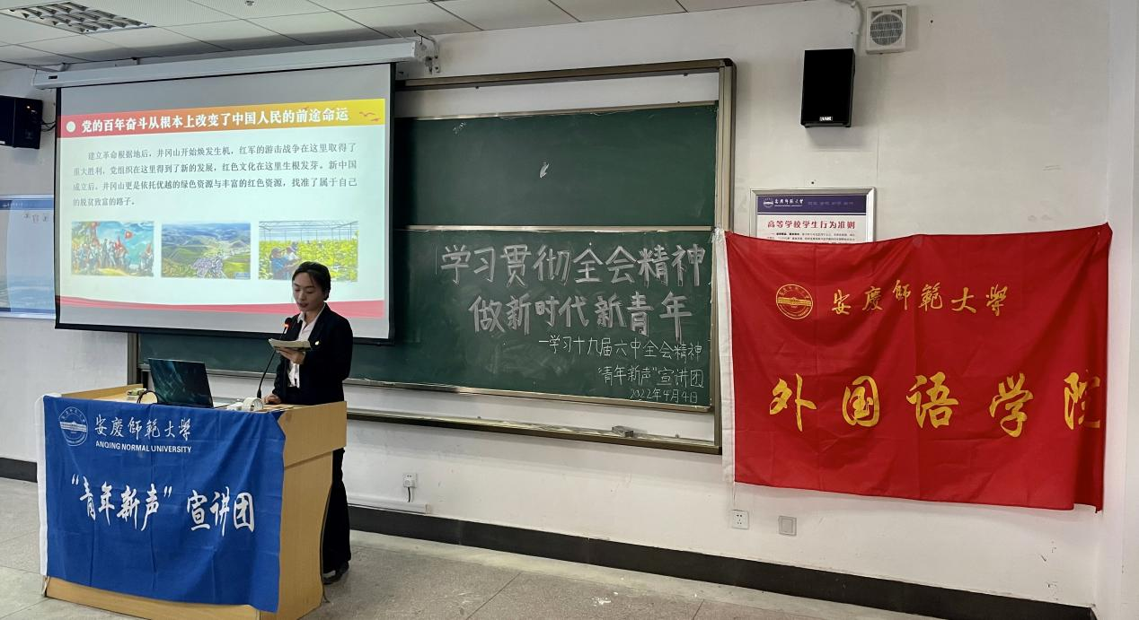 为贯彻落实十九届六中全会精神,4月4日下午,学校“青年新声”宣讲团在E314开展题为“学习贯彻全会精神,做新时代新青年”的宣讲活动,维多利亚老品牌76696vic一百余名学生到场听讲。